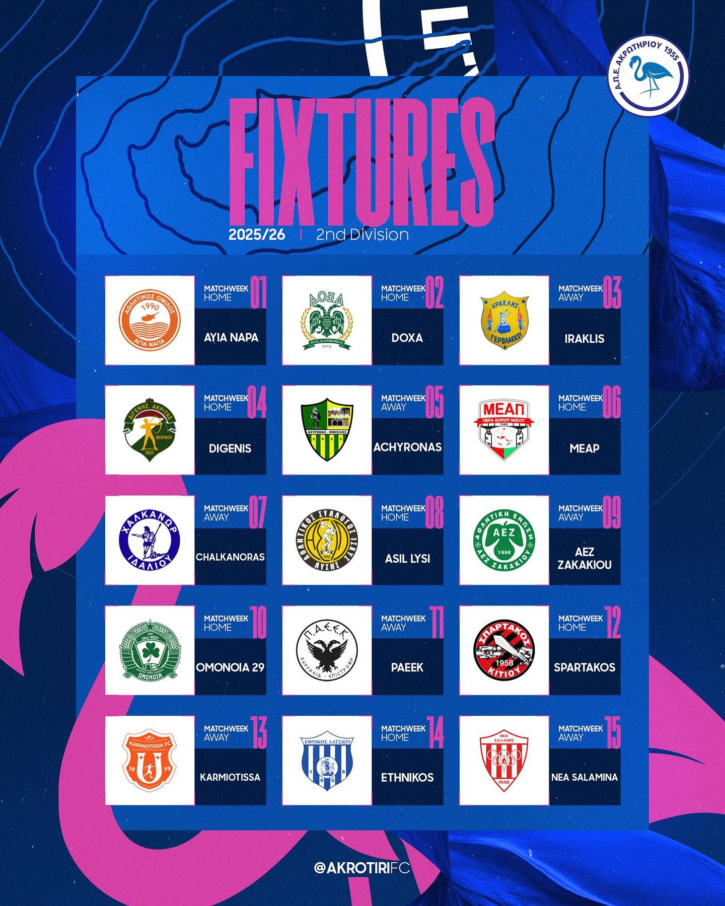 APEA Akrotiri FC, the proud “Flamingos”, begin a new chapter this September as they step into the 2025–26 Cypriot Second Division. Fresh off their promotion, the team from Akrotiri is eager to prove they belong among Cyprus’s rising clubs. Opening Fixtures These early games will be crucial in setting the tone, with back-to-back home matches giving fans the perfect chance to support the Flamingos. What’s Ahead The Second Division features 16 clubs, with every team meeting once before the league splits into a Championship Group and a Relegation Group. Every …